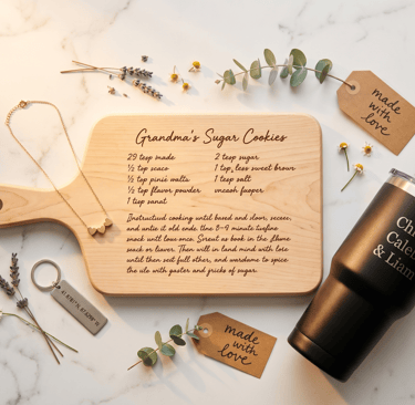 One board, one cherished recipe — but order one for every sibling so the whole family has the same heirloom. A beautiful project that pulls families together.
